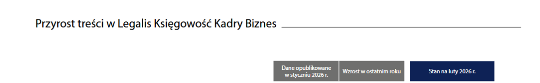 System Informacji Prawnej Legalis Księgowość Kadry Biznes w lutym 2026 r. uzupełniony został w stosunku do poprzedniego miesiąca aż o 513 aktów prawnych oraz 715 aktów UE, a także o 22 194 orzeczeń (w tym 18 948 orzeczeń sądów).